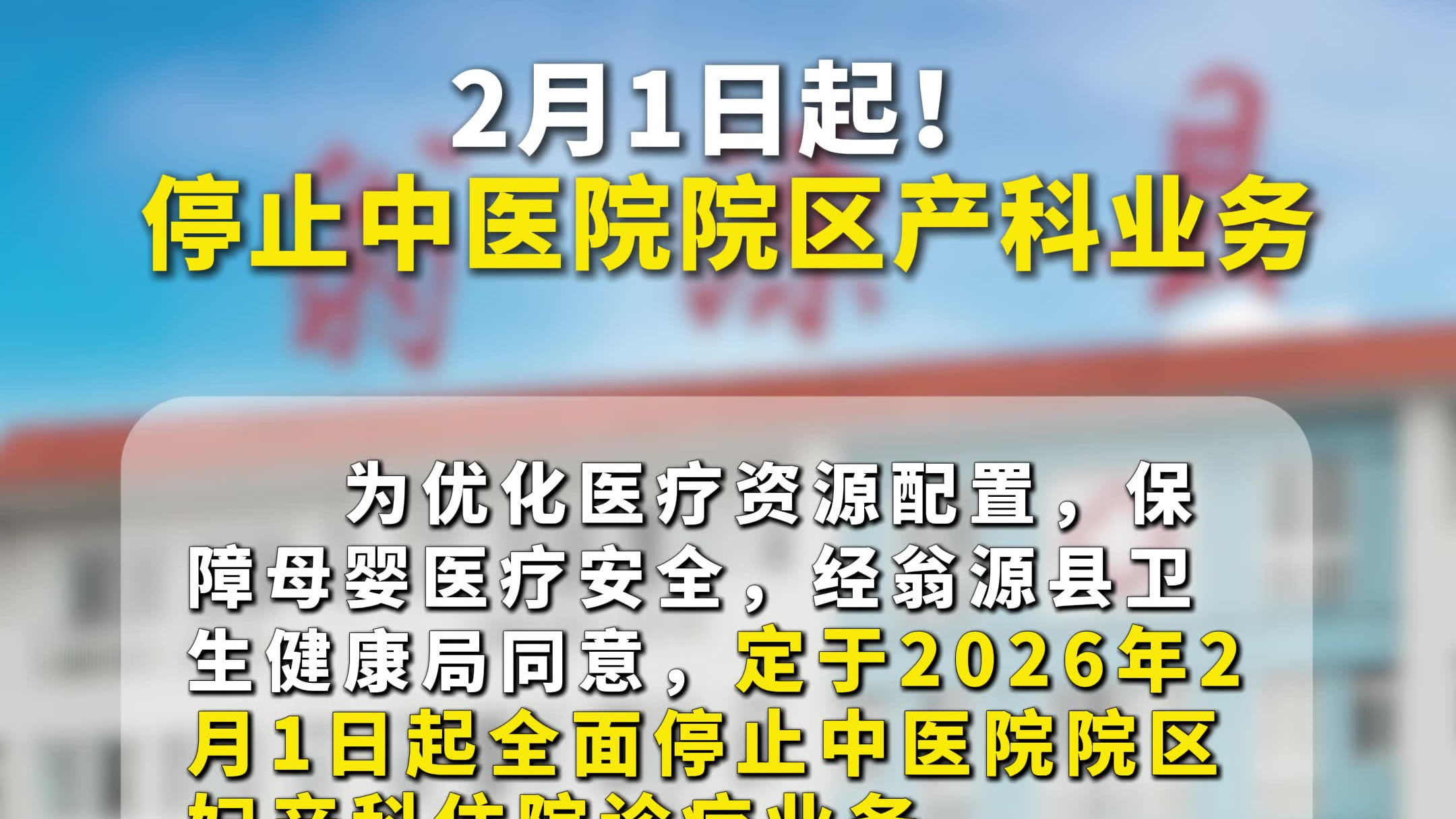 2月1日起,停止中医院院区产科业务