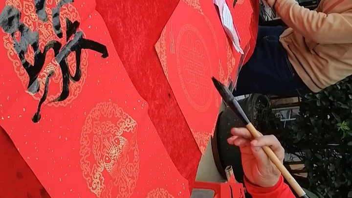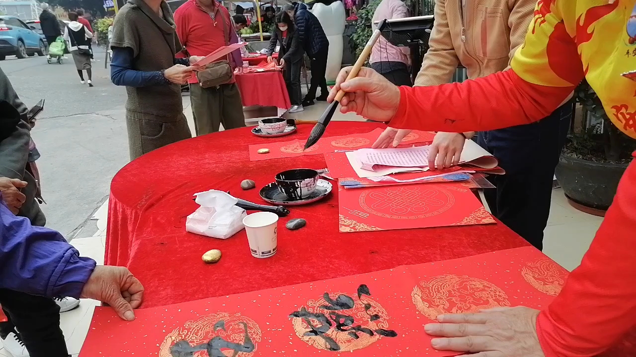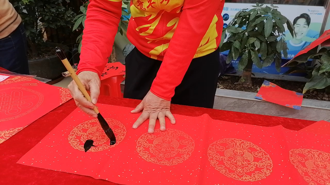 我的对联书写,金燕迎春万家欢视频。在石围塘广二口腔挥春。