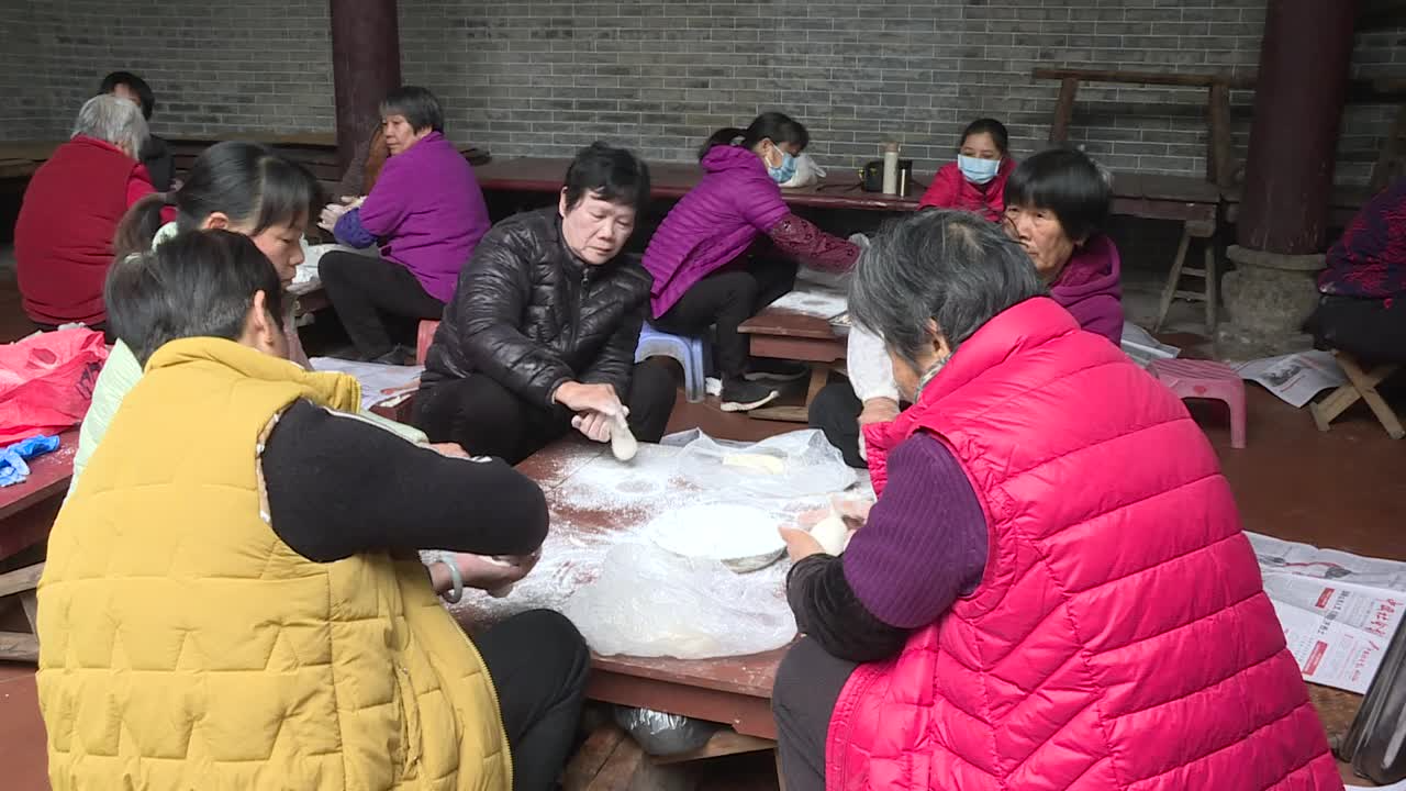 广州白云:龙归街北村村炸煎堆油角迎新春