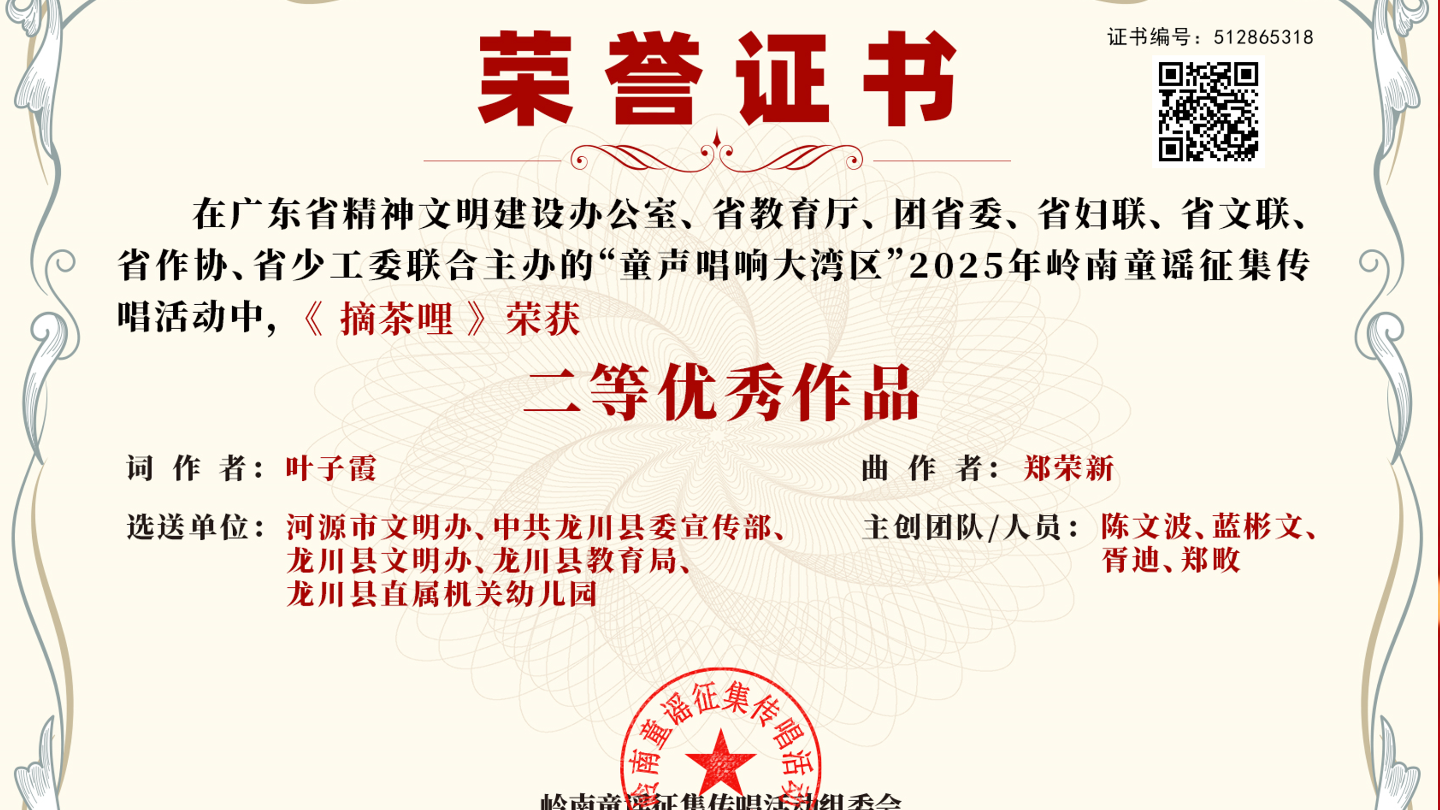 龙川原创童谣《摘茶哩》与《嘟春车》在省级大赛中斩获佳绩