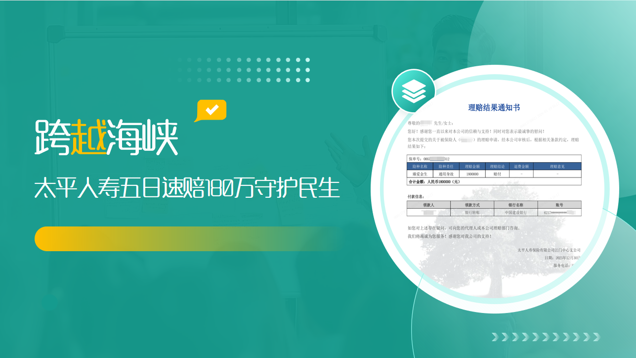 跨越海峡,太平人寿五日速赔180万守护民生