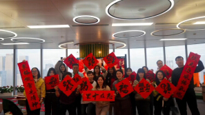 马到成功,挥毫送福。百信集团三棵柚挥春送福。