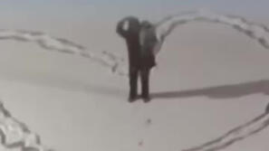 父子雪地画巨型爱心,送给妈妈充满爱意的惊喜