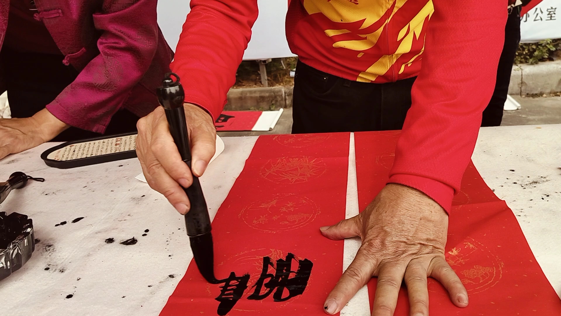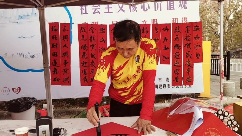 马上进步,在石围塘挥春送福送爱心活动,我的书写视频。