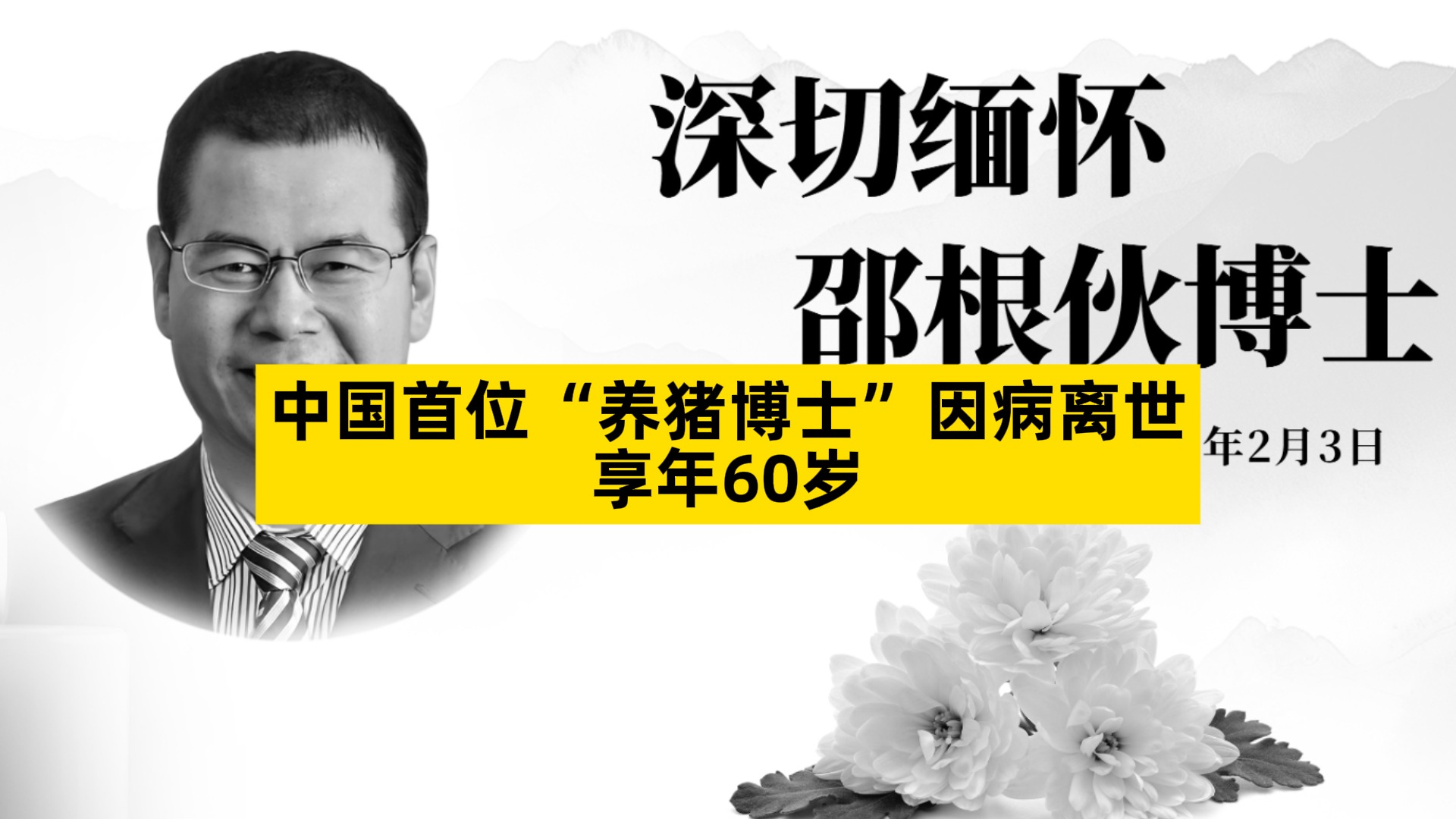 中国首位“养猪博士”因病离世,享年60岁