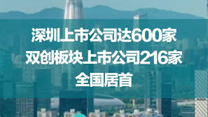 深圳上市公司达600家,双创板块216家全国居首
