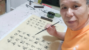 在龙归广州湾酒家挥春送福,我的隶书“掂过碌蔗”书写视频。