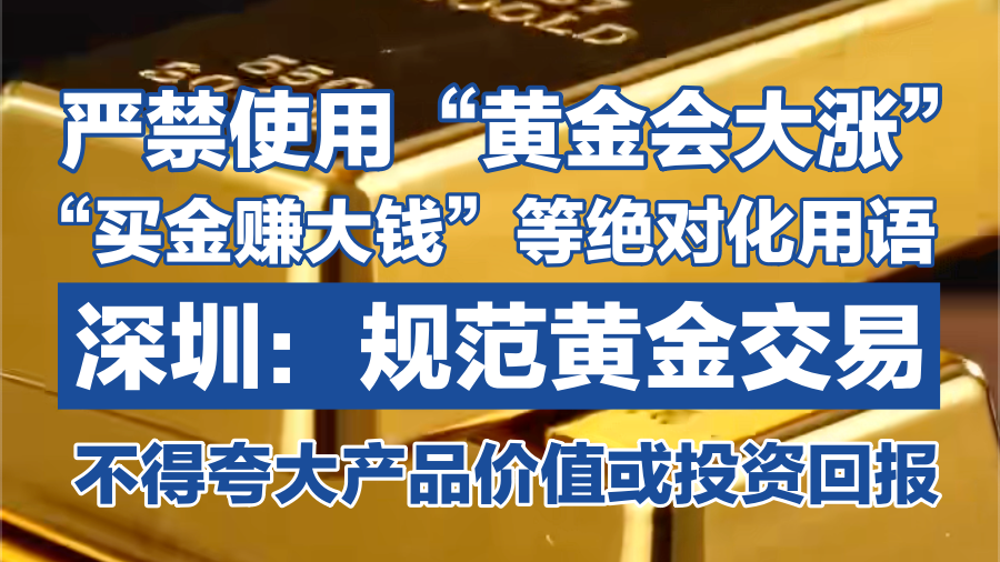 深圳出手规范黄金交易:禁用“黄金会大涨”“赚大钱”等用语