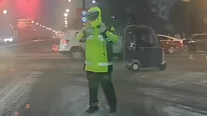 一交警在雪中推车不慎摔倒,队友一把拽回并“咆哮训斥”