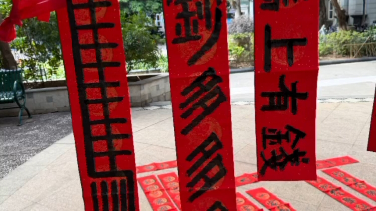 昨天在珠江广场挥毫,应街坊要求书写的最奇葩新春联联。