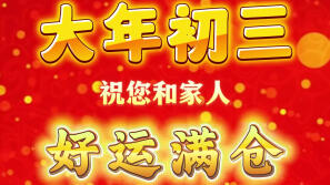大年初三,祝您和家人,好运满仓,快乐满仓,平安满仓!