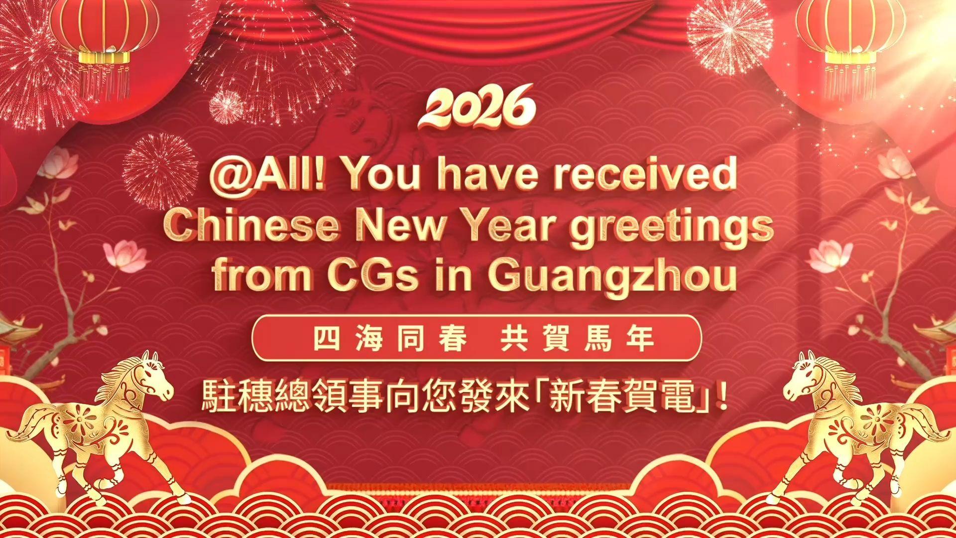 四海同春,共贺马年,驻穗总领事向您发来“新春贺电”!