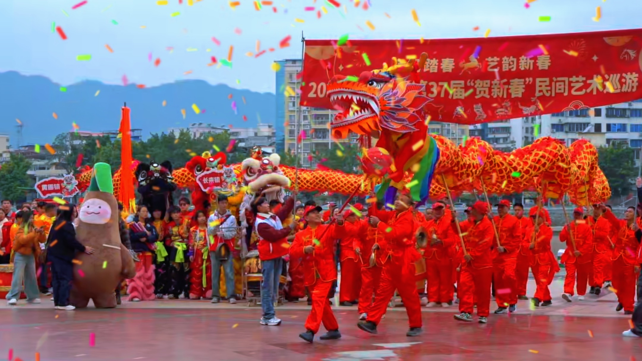 龙腾狮跃闹新春!韶关乐昌民间艺术巡游,万人空巷年味拉满!