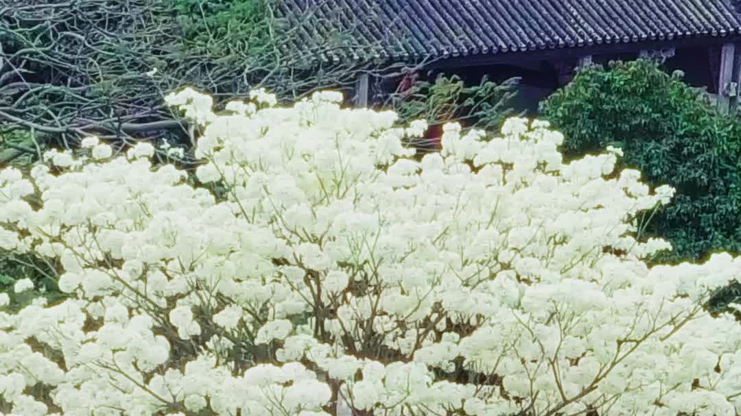 余荫山房这棵罕见的白花风铃开成雪海了,赏花正当时