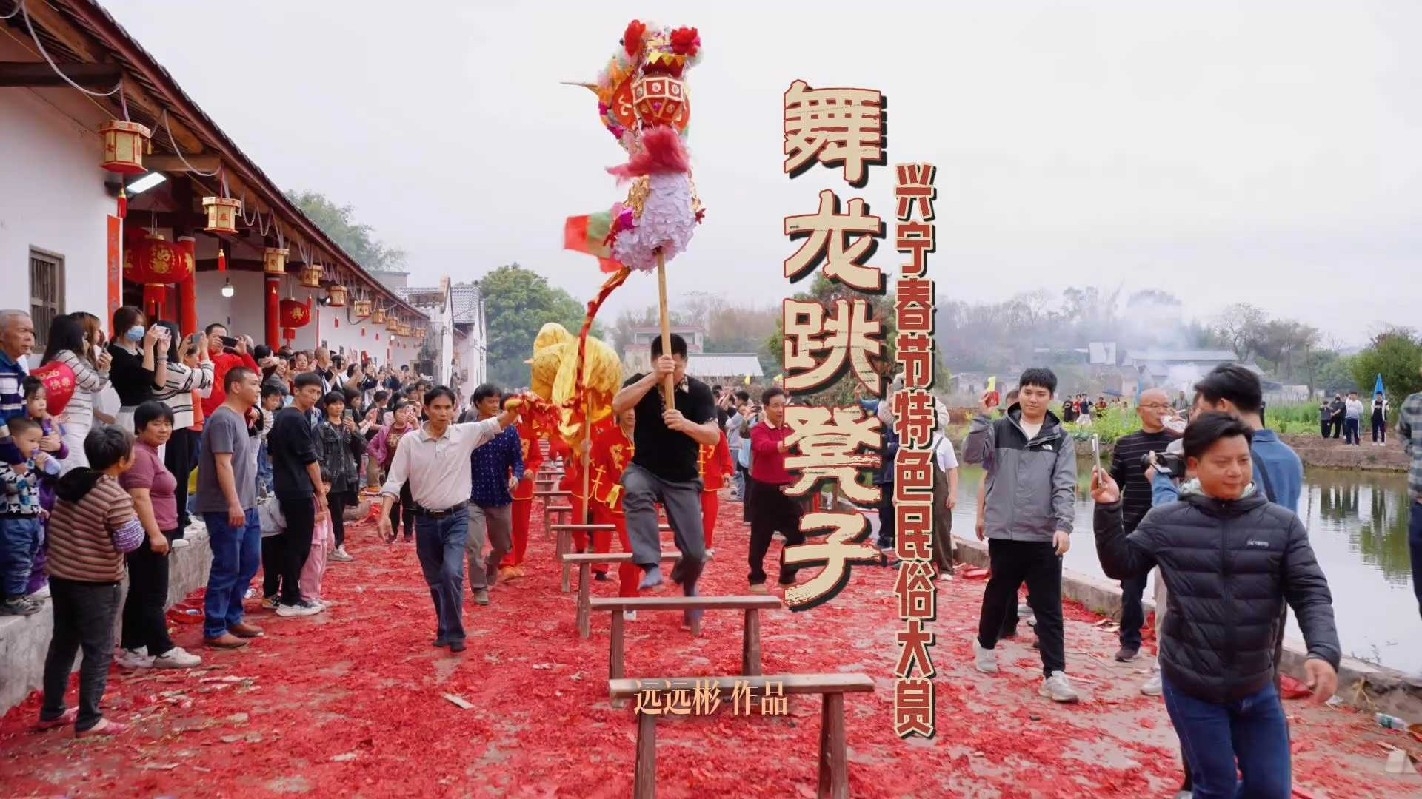 兴宁春节民俗之舞龙跳凳子