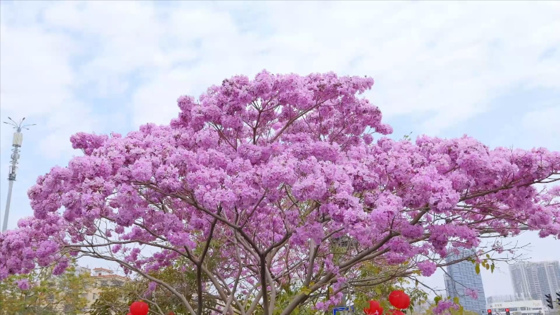广州白云:紫铃繁花织锦缎 花团锦簇迎新岁