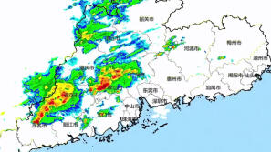 东莞多镇暴雨黄色预警生效,广佛一带较强雷雨云带靠近