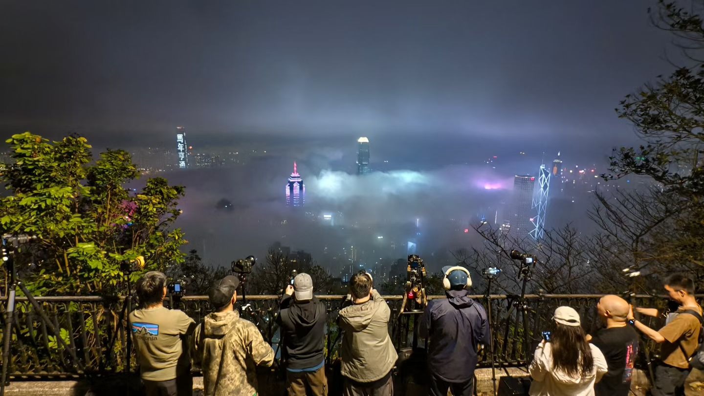 香港太平山平流雾奇观,摩天大厦时隐时现,摄影爱好者狂打卡