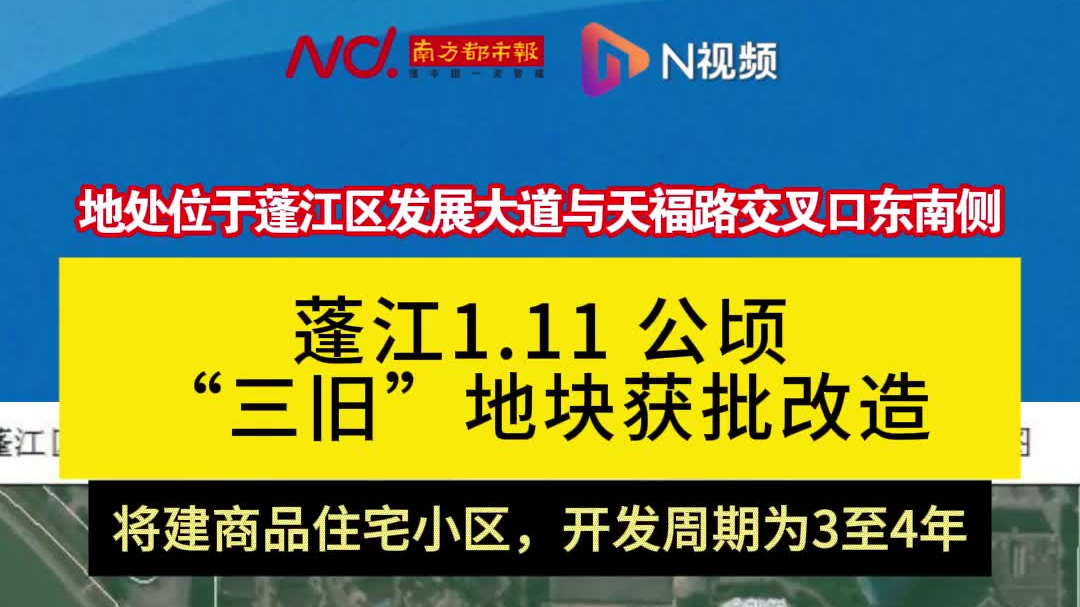 蓬江1.11公顷“三旧”地块获批改造,将建商品住宅小区