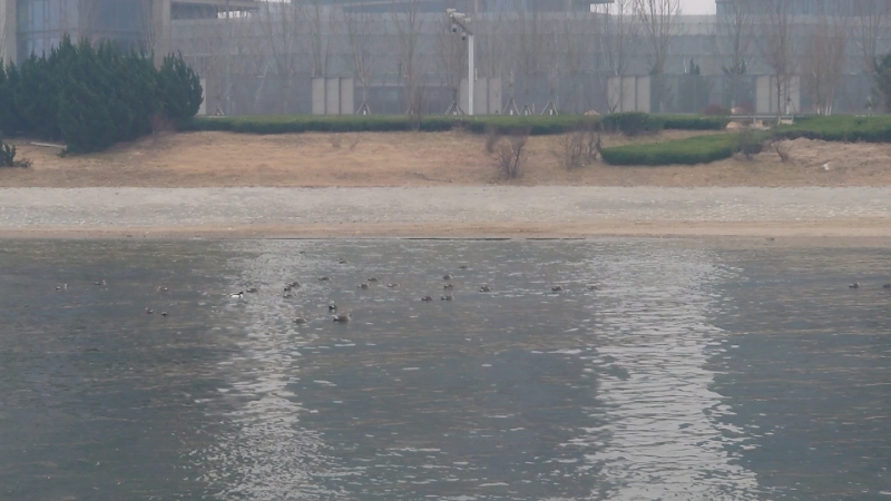 山东省烟台市开发区黄金河两合水黑天鹅等鸟类风景一览