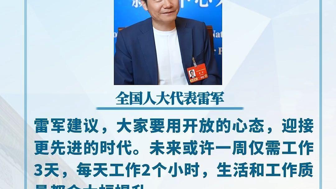 雷军:未来每周或仅需工作3天