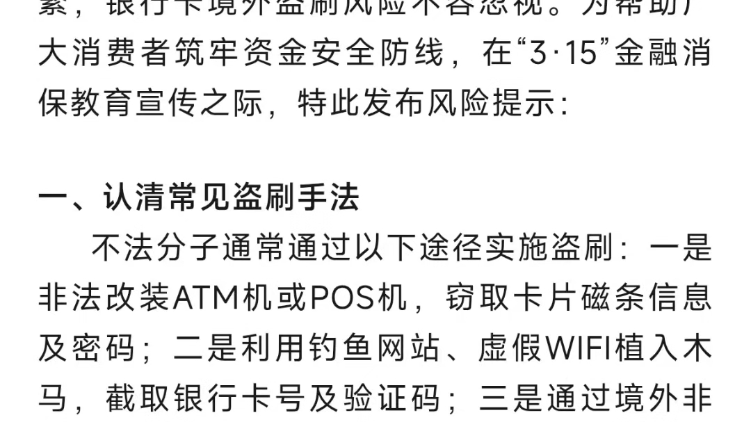 3.15消保教育宣传| 警惕银行卡境外盗刷,守护钱袋子