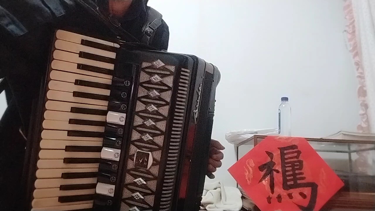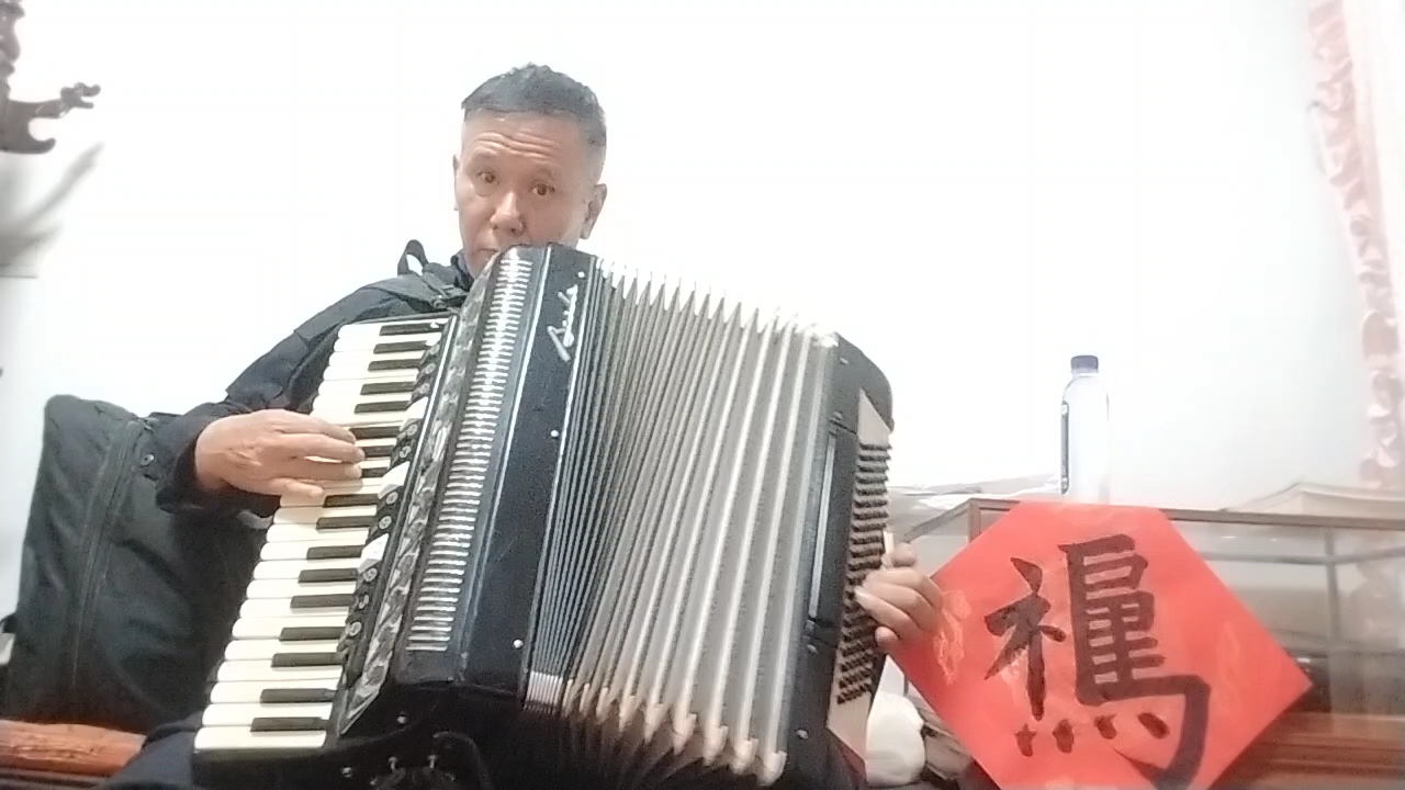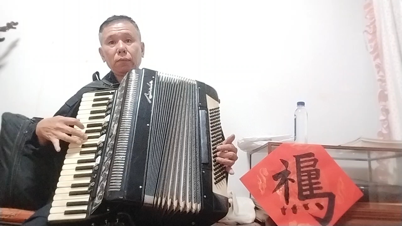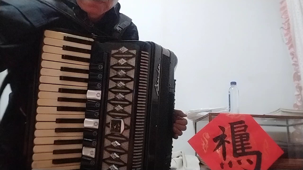 我手风琴演奏儿歌《小白船》。朝鲜歌曲
