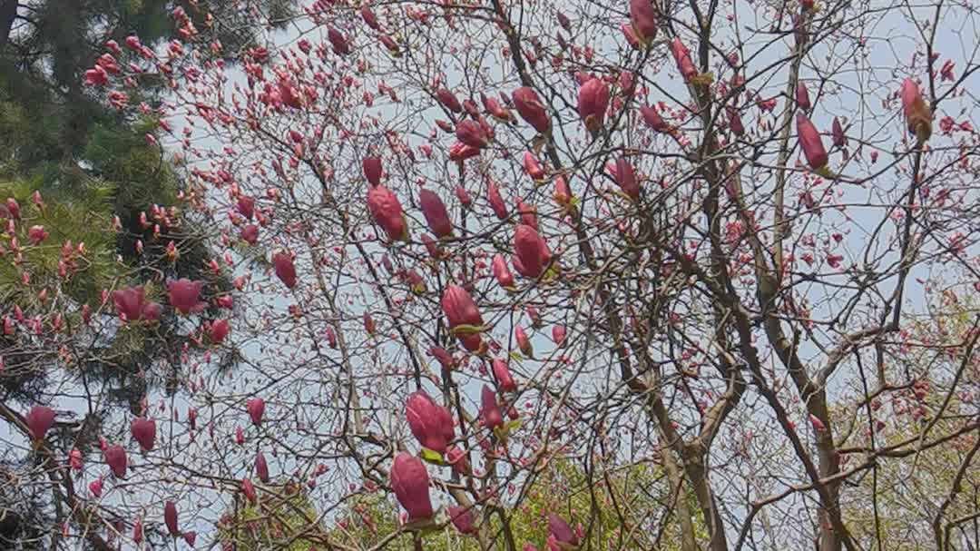 暖春已至,街上的紫玉兰在枝头次第舒展……