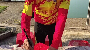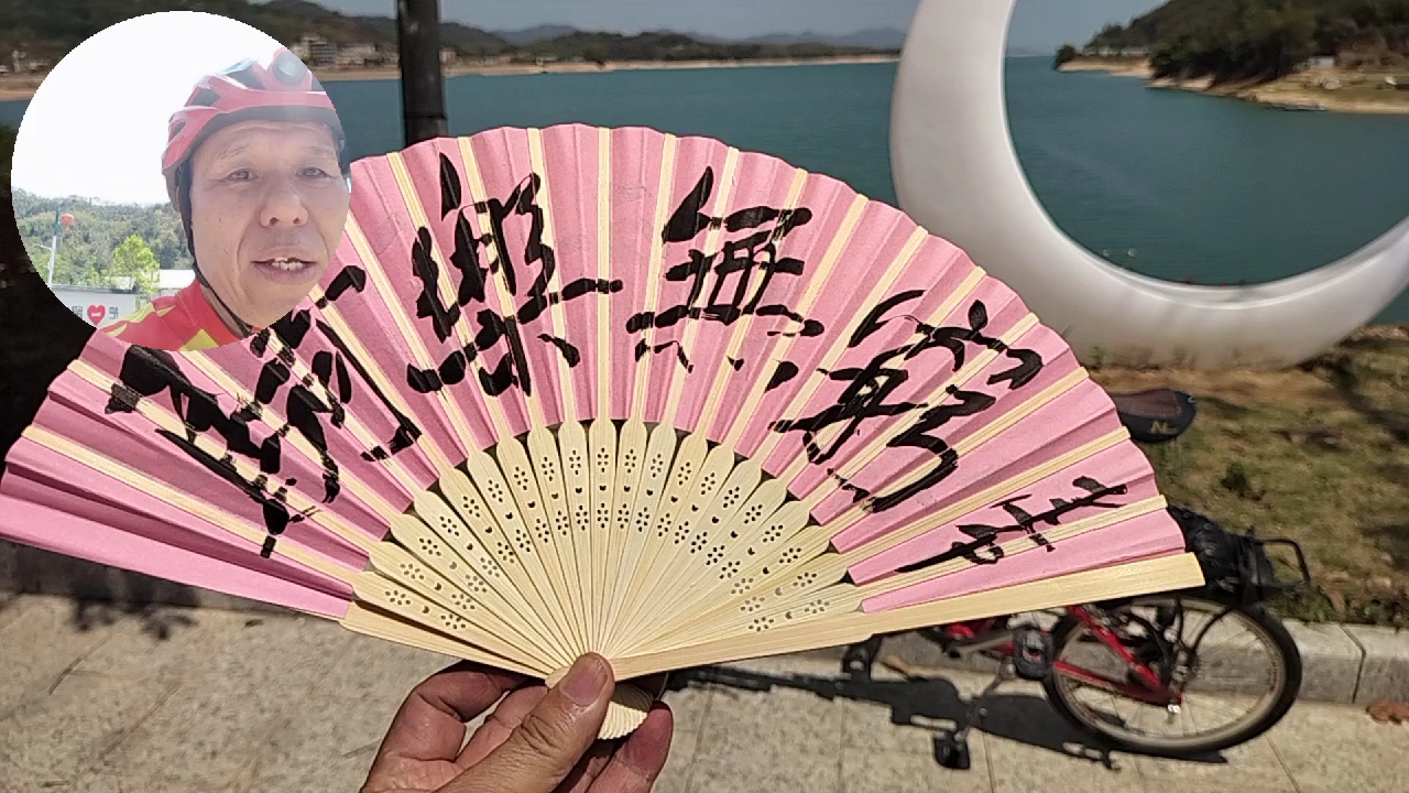 在万绿湖乡村骑士锡场站现场,为佛山狼骑队书写。