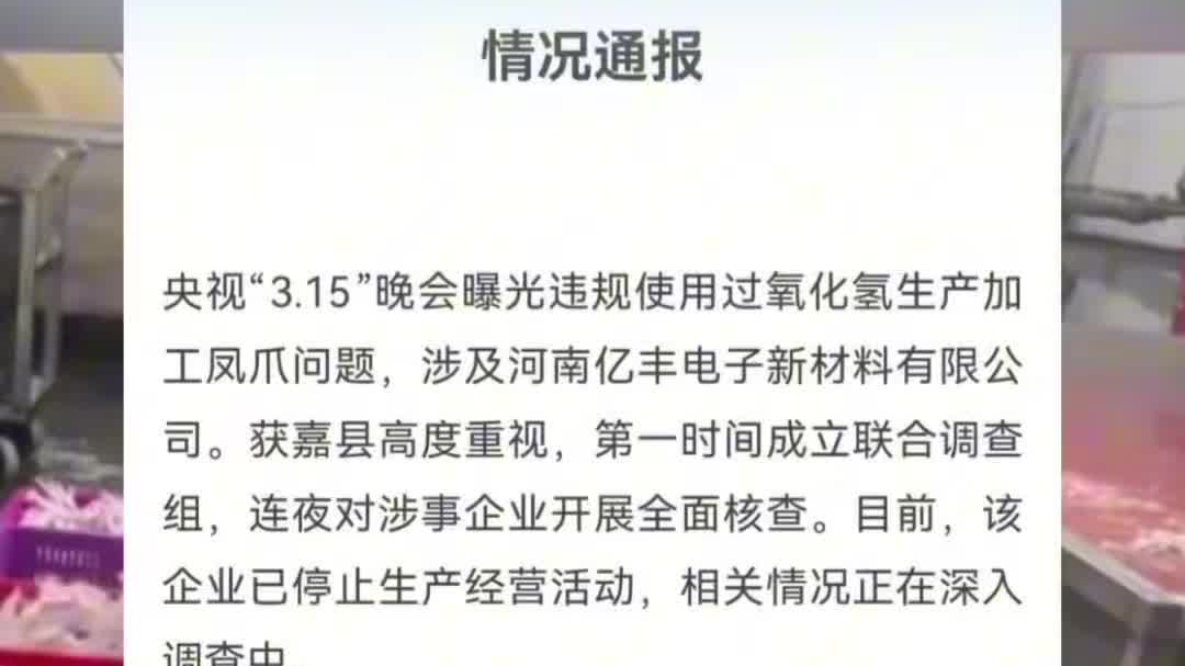 “3·15”晚会曝光“漂白鸡爪”,官方通报