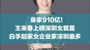 910亿!王来春上榜深圳女首富,白手起家女企业家深圳最多