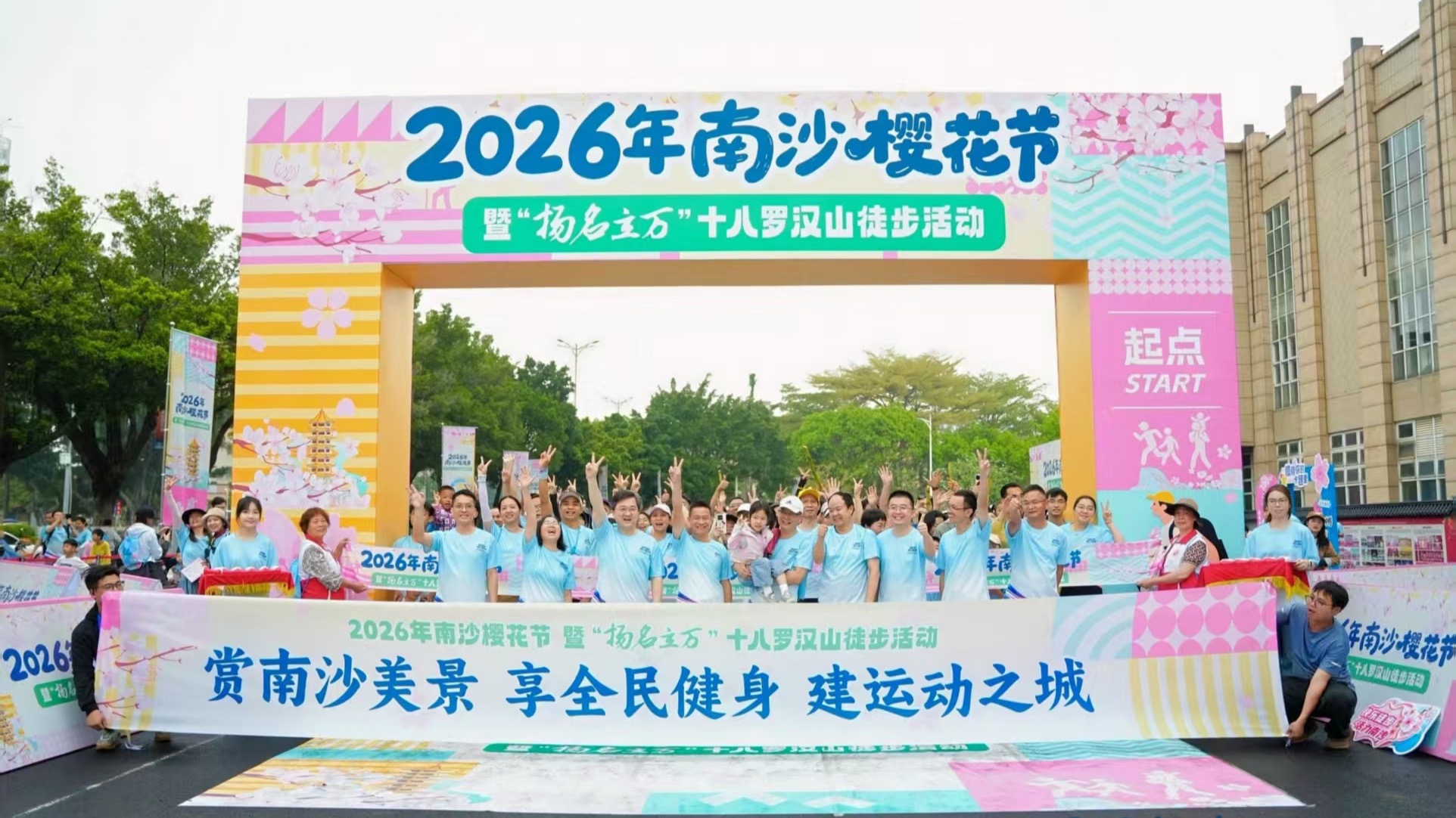 樱香漫山步履留痕,数千名徒步爱好者广州南沙踏春