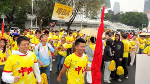 “冠军牛”也来加油了!中山队球迷助威团进场