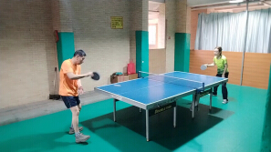 和我的书法好友明兰老师在佛山里水镇打乒乓球。