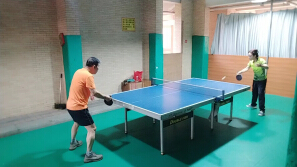 和我的书法好友明兰老师在佛山里水镇打乒乓球。