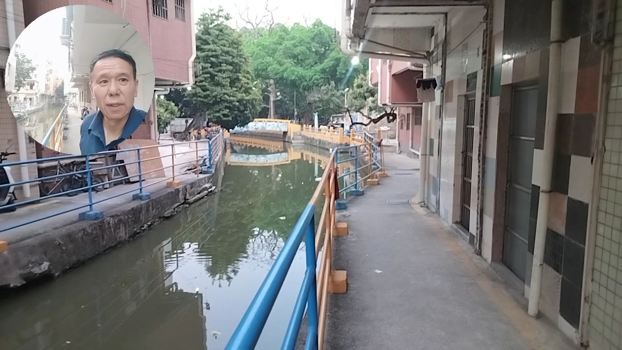 番禺上漖村,龙舟制作水乡之村,两边的村居几乎把小溪流盖住