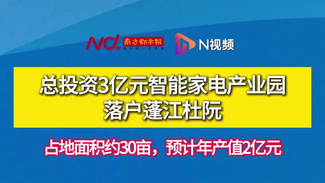 总投资3亿元智能家电产业园落户蓬江杜阮,预计年产值2亿元
