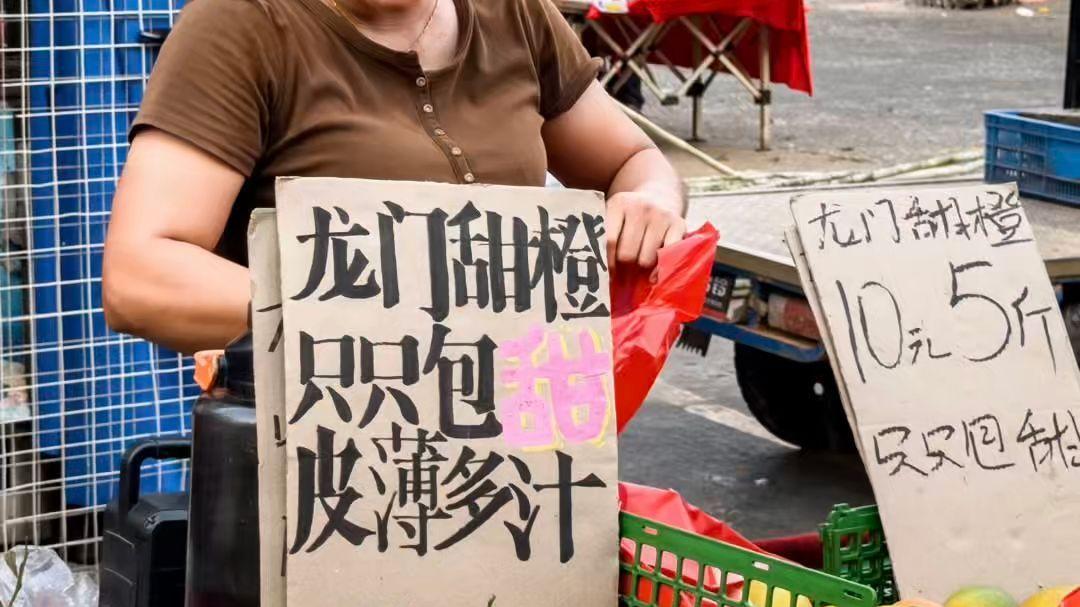侯廷威在各地菜市场免费给摊主手写招牌。 来源@猴斯基