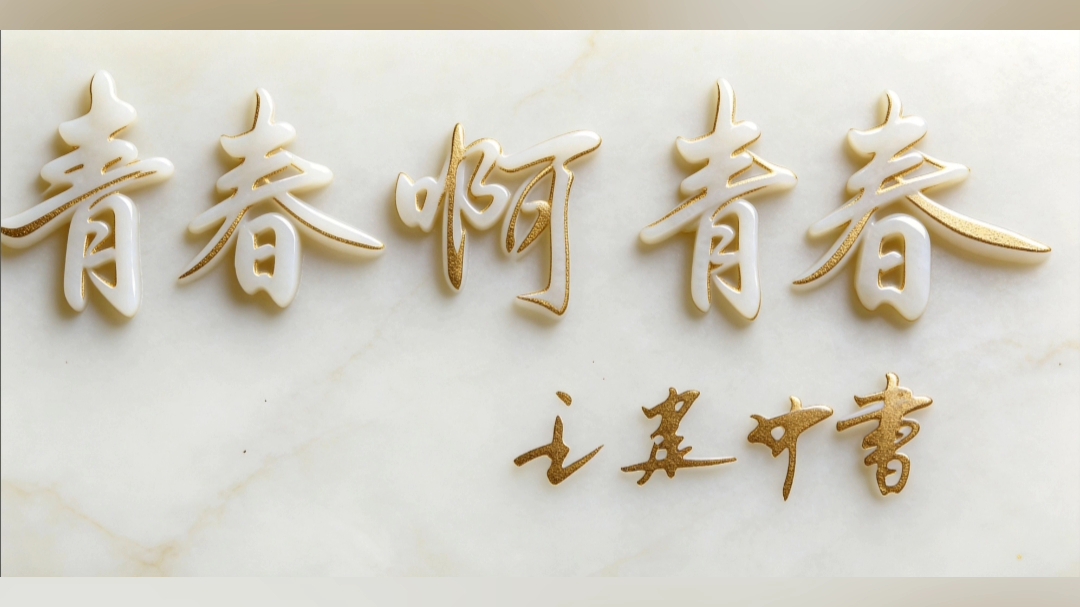 我的行书“青春啊青春”,配乐是我的手风琴演奏《青春啊青春