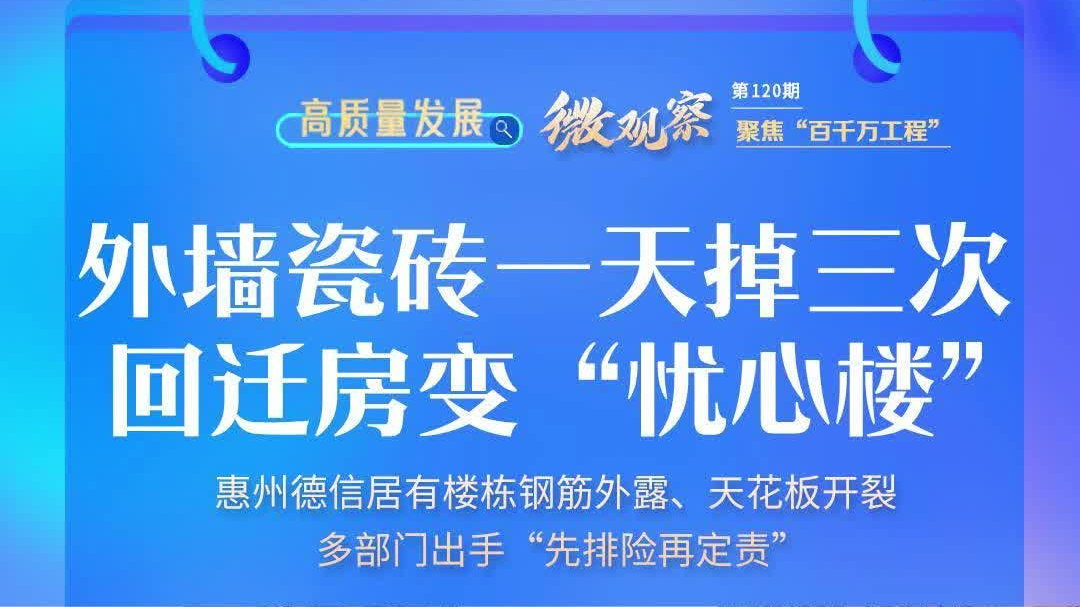惠州一小区外墙瓷砖一天掉三次,回迁房变“忧心楼”官方回应