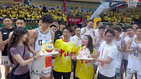 比赛结束后,整个球馆为中山队1号球员刘伟滔庆祝生日