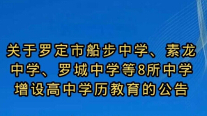 关于罗定船步中学、素龙中学等8所中学增设高中学历教育公告