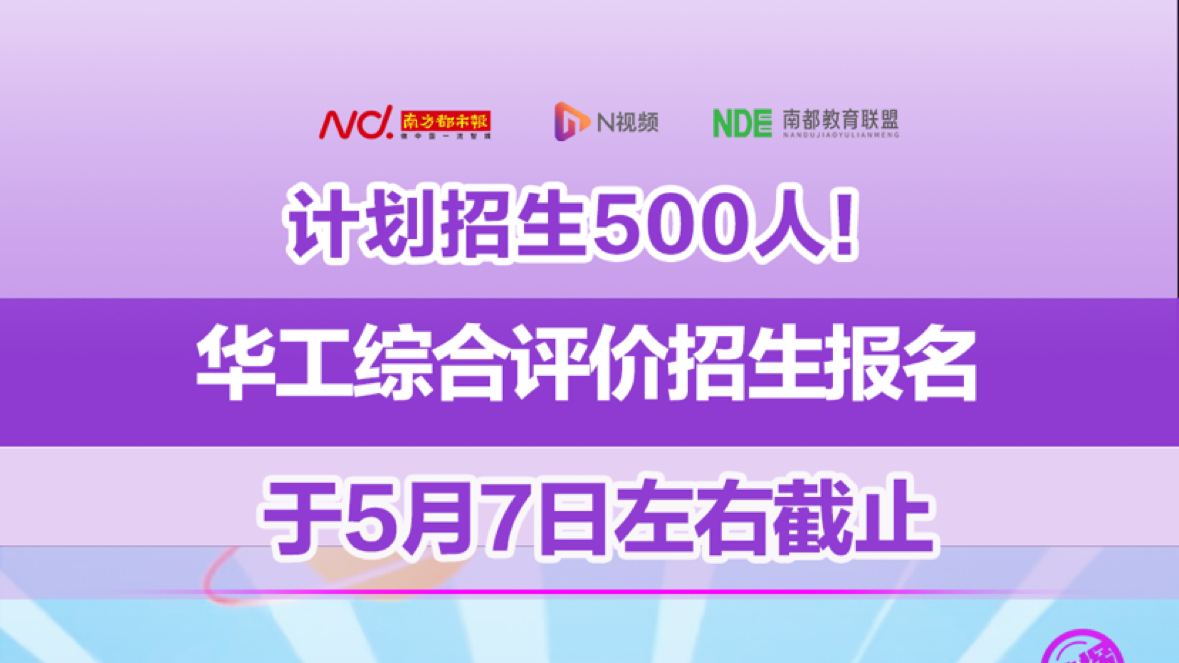 计划招生500人!华工综合评价招生报名于5月7日左右截止