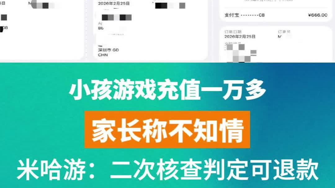 小孩游戏充值一万多,家长称不知情,米哈游:二次判定可退款