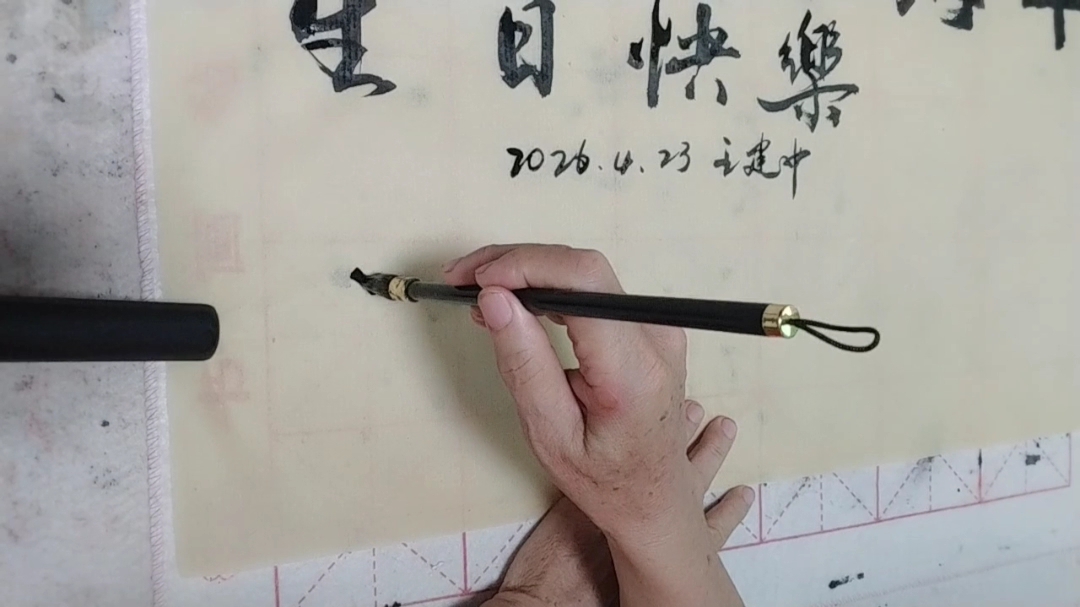 我的行书“人民海军生日快乐”。配乐是我的手风琴演奏军歌。
