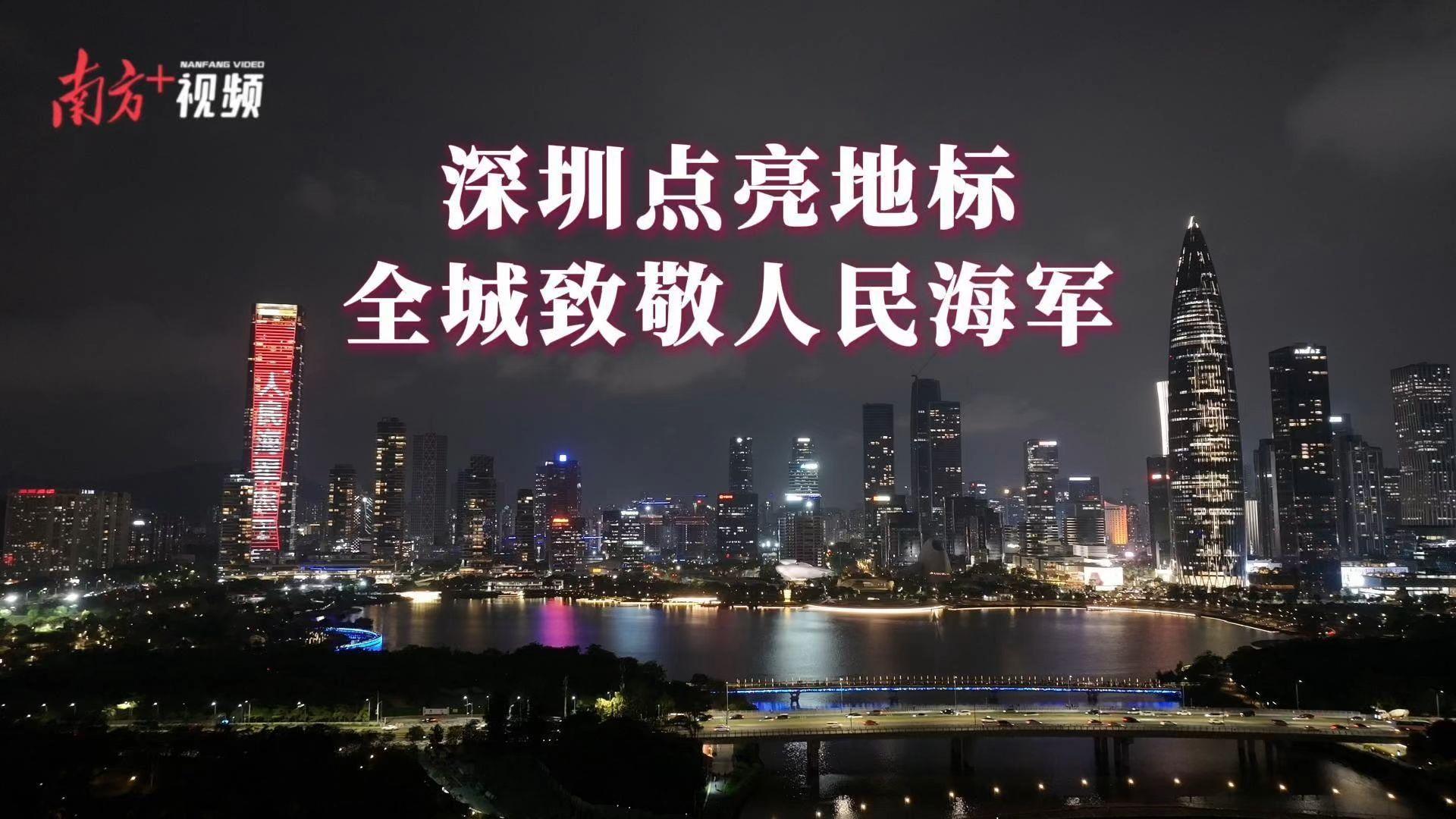 视频|深圳多个地标亮灯,全城致敬人民海军