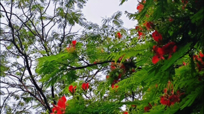 绿荫里,藏着一捧热烈的红