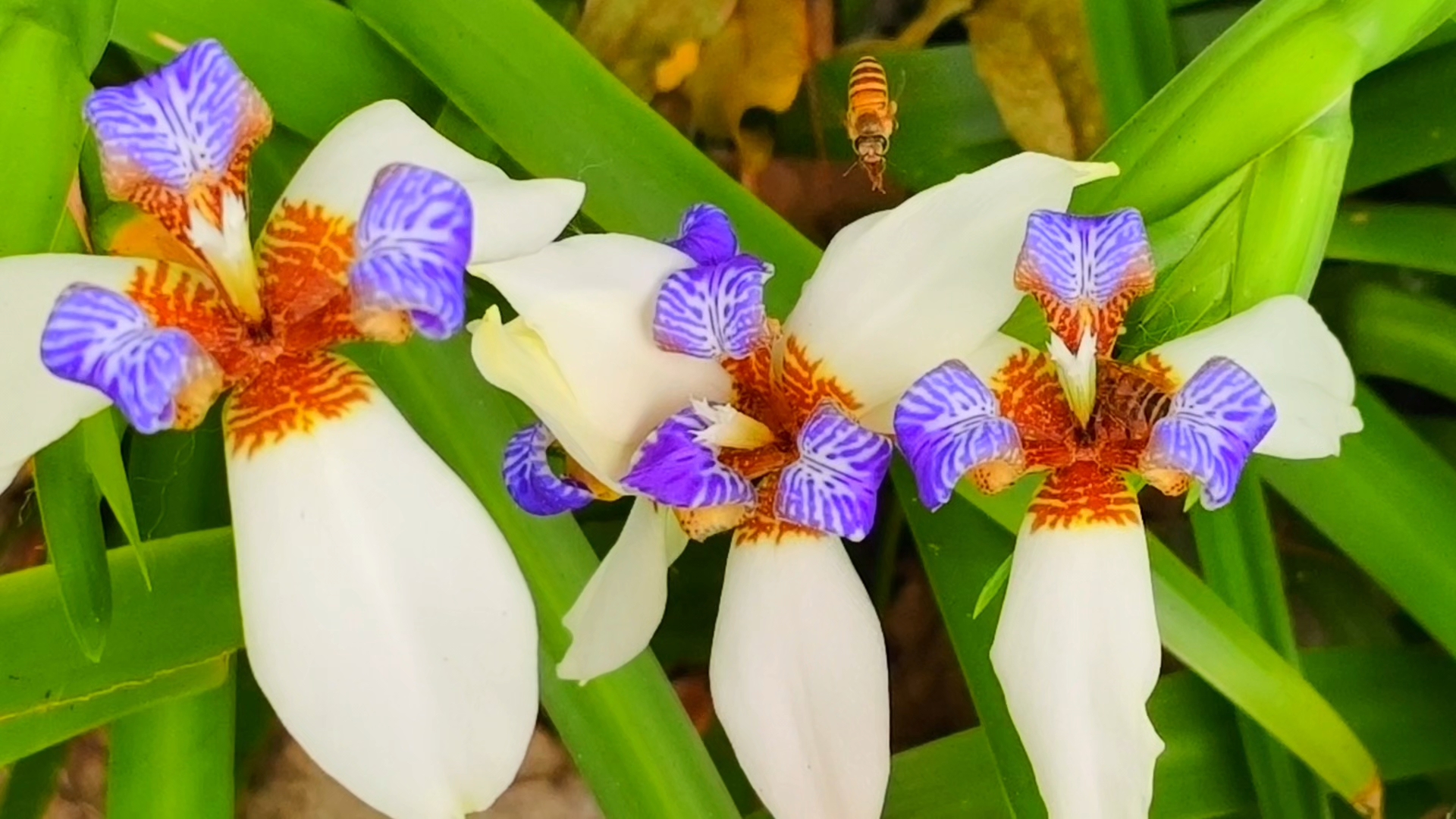 深圳街头夏正好:巴西鸢尾翩跹开,蜜蜂飞舞逐香来