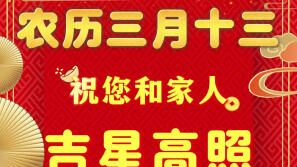 农历三月十三,祝您和家人,吉星高照、万事大吉!