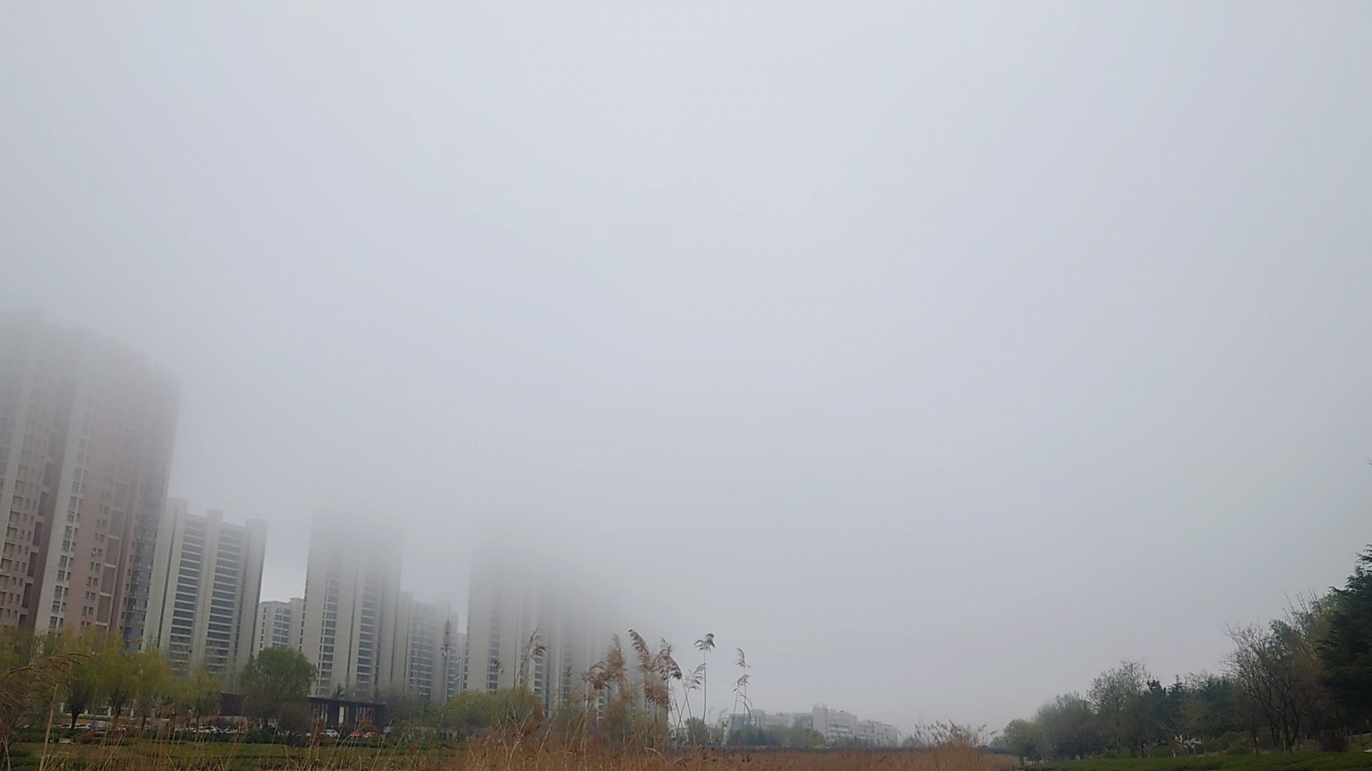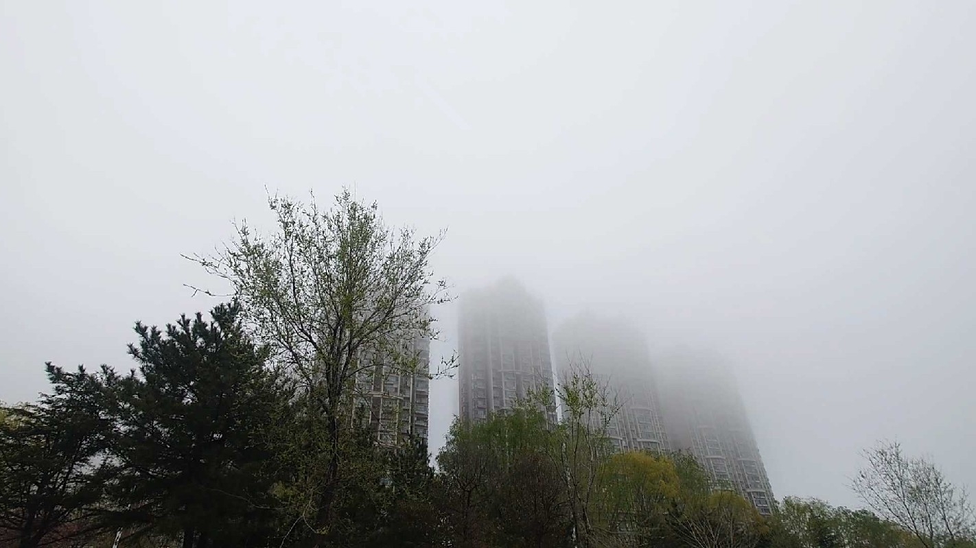 山东省烟台市开发区黄金河雾天风景一览